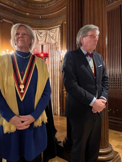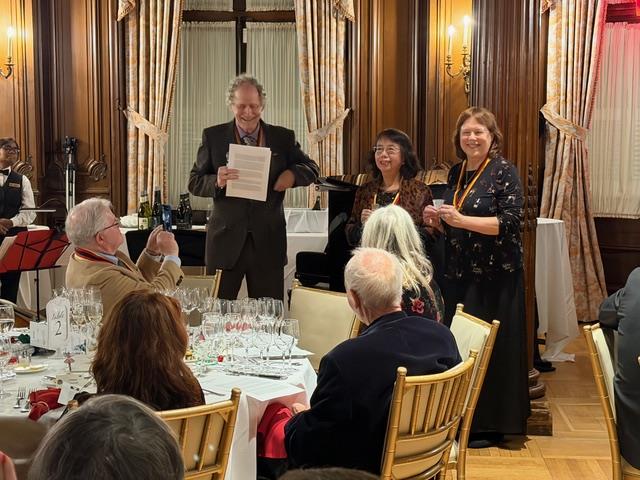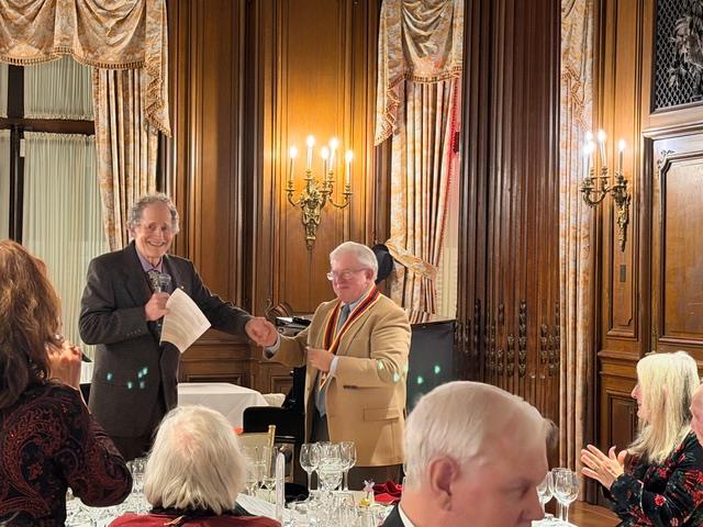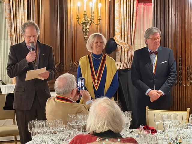 On December 12, 2025, at the annual Holiday Dinner of the Capital Chapter of the German Wine Society at the Cosmos Club in Washington, DC. The German Wine Society awarded Silver Medallions to five members of the Capital Chapter. These awards have not been made for many years, as the Silver Medallion examination had to be updated first to cover the many developments in German wines since it was first written decades ago. All awards of the Silver Medallion have been approved by National President Beth Sheligo, who holds the Gold Medallion, the highest level, based on study at the German Wine Institute.