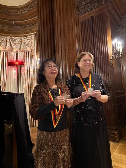 2. Maria So and Barbara Grofic being presented with Silver Medallions